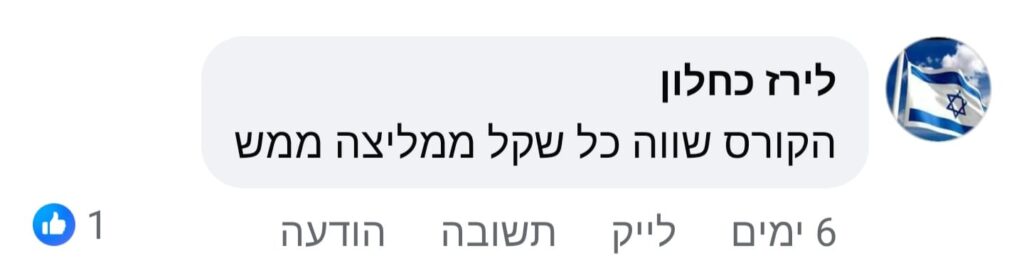 " ממש נהנתי מכל רגע, הסדנה ממש ערוכה יפה ופשוט להבנה